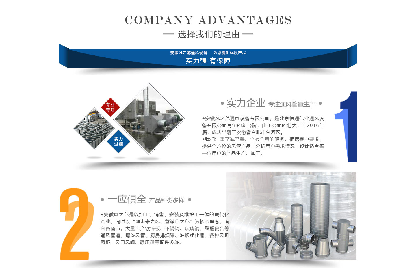 安徽風(fēng)之范通風(fēng)設(shè)備有限公司,是北京恒通偉業(yè)通風(fēng)設(shè)備有限公司再創(chuàng)的新臺(tái)階,多年來(lái),公司員工憑著“誠(chéng)信敬業(yè)、團(tuán)結(jié)拼搏、勇于開(kāi)拓、務(wù)實(shí)進(jìn)取”的企業(yè)精神,先后承接了多項(xiàng)重點(diǎn)工程項(xiàng)目,使公司健康穩(wěn)步發(fā)展。現(xiàn)由于公司的壯大,業(yè)務(wù)的拓展,又于2016年底,成功坐落于安徽省合肥市包河區(qū)。本公司生產(chǎn)設(shè)備精良,技術(shù)力量雄厚,質(zhì)保體系完善!讓用戶(hù)體驗(yàn)到,貼心的服務(wù),無(wú)憂(yōu)的售后!風(fēng)之范是以加工、銷(xiāo)售、安裝及維護(hù)于一體的現(xiàn)代化企業(yè),同時(shí)以“創(chuàng)未來(lái)之風(fēng)、營(yíng)誠(chéng)信之范”為核心理念,面向全國(guó)各省市,大量生產(chǎn)鍍鋅板、不銹鋼、玻璃鋼、酚醛復(fù)合等通風(fēng)管道、螺旋風(fēng)管、廚房排煙罩、油煙凈化器、各種風(fēng)機(jī)風(fēng)柜、風(fēng)口風(fēng)閥、靜壓箱等配件設(shè)施。廣泛承接商場(chǎng)、工廠、酒店、寫(xiě)字樓、地下室等,消防排煙工程、除塵凈化工程、室內(nèi)通風(fēng)工程、暖通空調(diào)工程、廚房排煙凈化工程。我們力求上進(jìn),追求,歡迎各界人士技術(shù)指導(dǎo),經(jīng)濟(jì)合作,共創(chuàng)美好明天!